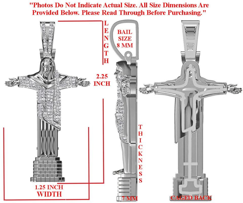 Real Genuine Authentic Diamond 0 60 Cwt 17 Grams Christ Redeemer Statue Jesus Full Body Pendant 10k White Gold On Religious Unisex Charm Chain Set 2 25 Walmart Com